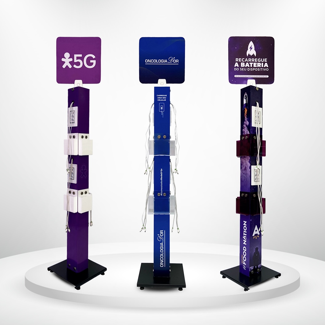 Compre agora seu Totem Carregador de Celular, em até 12 vezes no cartão. Totens Carregadores de Celular personalizados. Torre Extensão, Totem de Parede e Torres que carregam de 14 à 28 celulares.